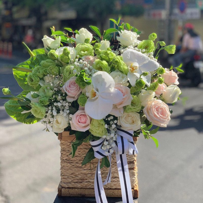 Một số loài hoa màu trắng hay sử dụng trong lẵng hoa để chúc mừng khai trương mà chúng ta có thể kể đến như hoa hồ điệp trắng, hoa hồng trắng, hoa cẩm tú cầu,… Những loài hoa này xuất hiện trong buổi lễ khai trương sẽ đại diện cho lời chúc khai trương may mắn.